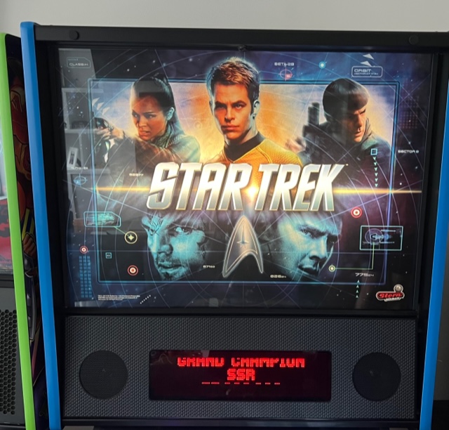 It's pinball at Warp Speed with Star Trek, a magnificent three-flipper game that obeys the Prime Directive: Fast, awesome, flowy pinball action! This game from rock star pinball designer Steve Ritchie is an amazing take on the JJ. Abrahams Star Trek movies, with a rocking Vengeance ship that shudders when you shoot it, a magnet that grabs the ball behind the drop target, and a deep ruleset that will have players of all skill levels coming back for more. Lush orchestral music from the film, including the iconic Trek theme, along with actual voice clips from the movie, and original pinball-related speech calls from Dr. McCoy (Bones portrayed by the movie's Karl Urban) round out an awesome sound and music package. This game is in great shape, and has an added shaker motor for rumbling cinema action! Get a piece of the action with Stern's Star Trek. |